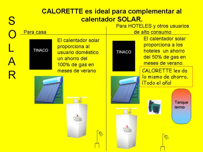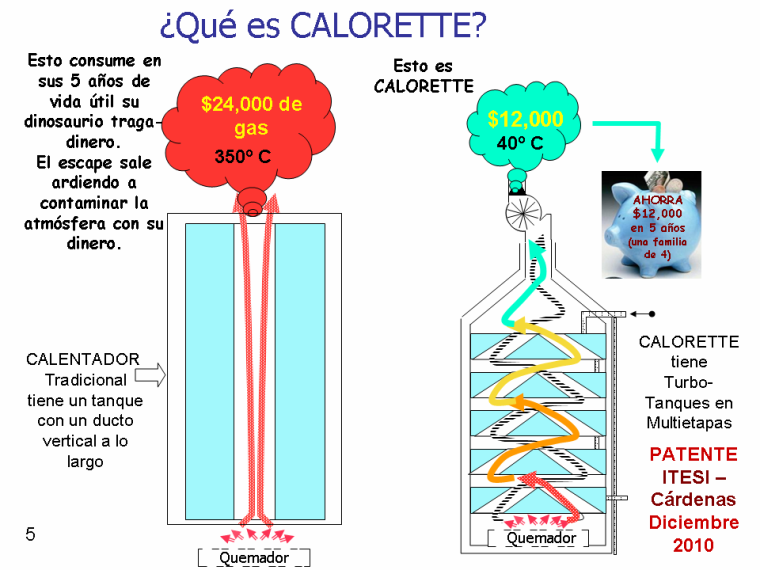 CALORETTE es un producto nuevo, desarrollado por científicos de México con patente vigente a partir de 2011. Es un calentador de gas de ULTRA ALTA EFICIENCIA cuyo RENDIMIENTO ENERGÉTICO opaca a los mejores calentadores de agua del mundo.
